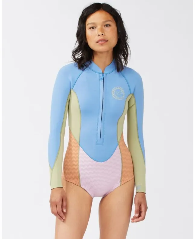 Traje de surf de primavera con manga larga Billabong Salty Dayz 2/2mm en color azul celeste para mujer