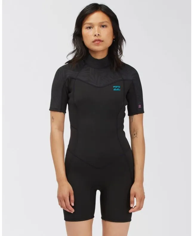 Traje de surf de primavera con manga corta y cremalllera posterior Billabong Synergy 2/2mm en color negro para mujer