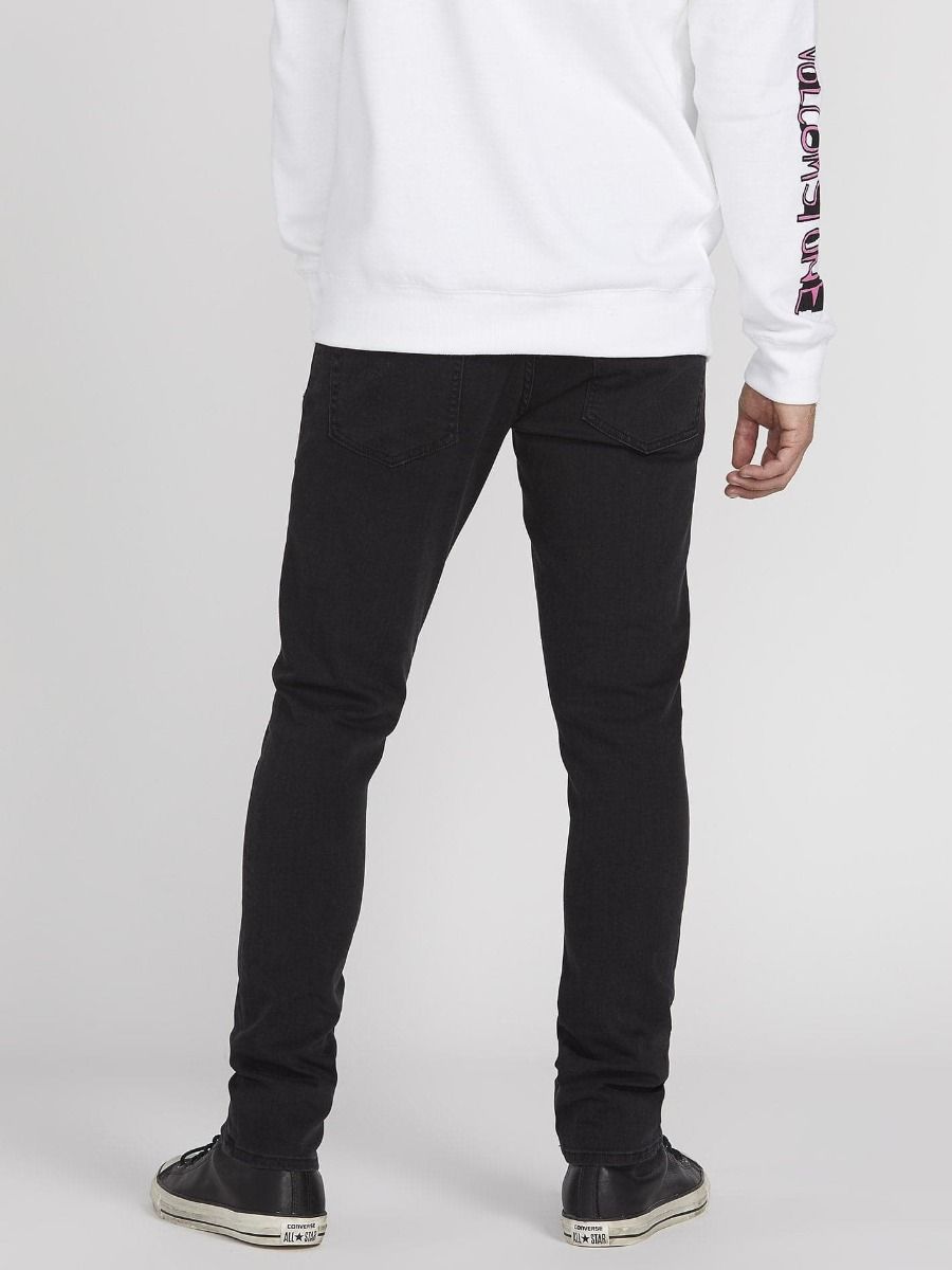 Estos pantalones vaqueros elásticos han sido confeccionados con tinte negro y un sutil lavado a la piedra para darle una aparincia vintage, y todos los detalles característicos de Volcom Brand Jeans.