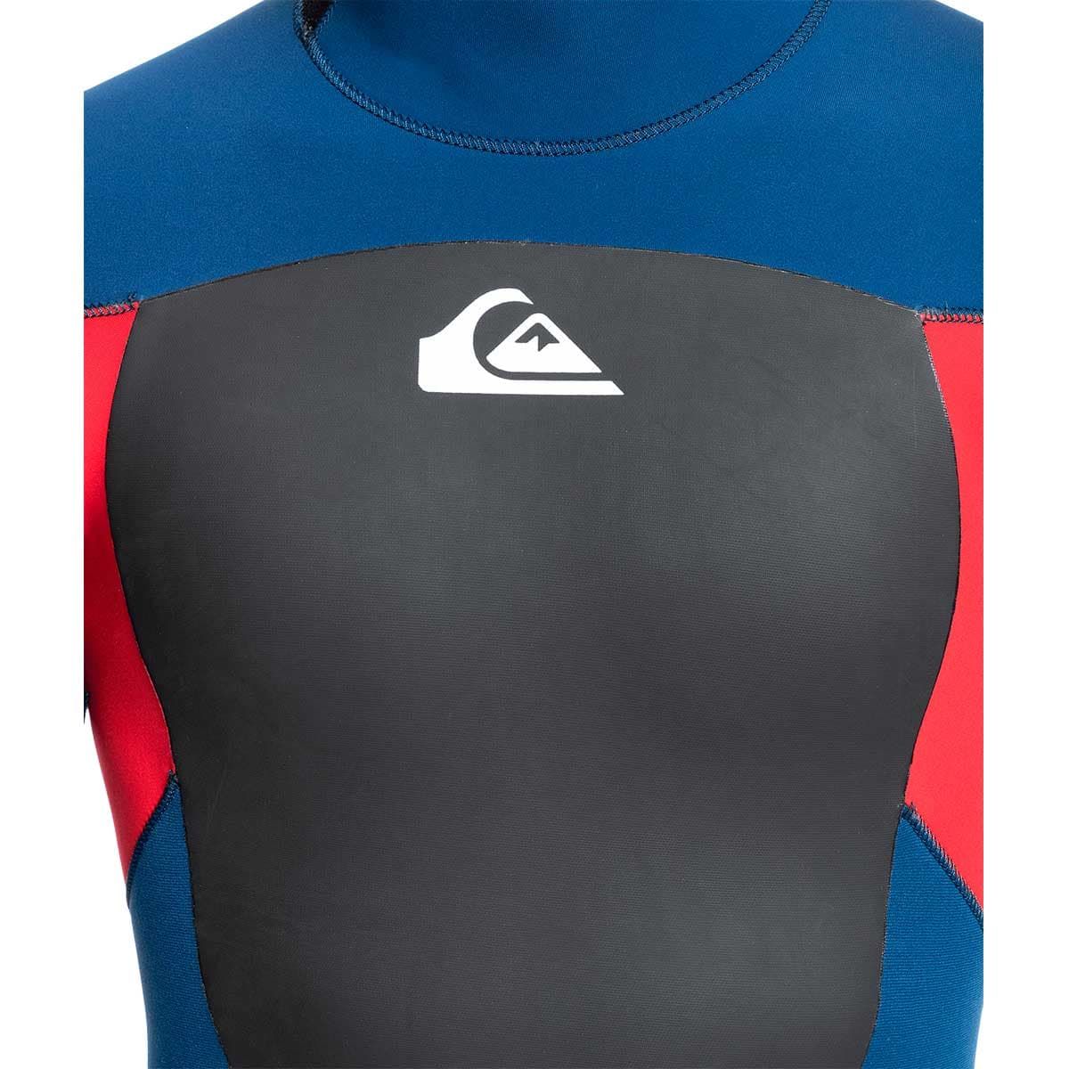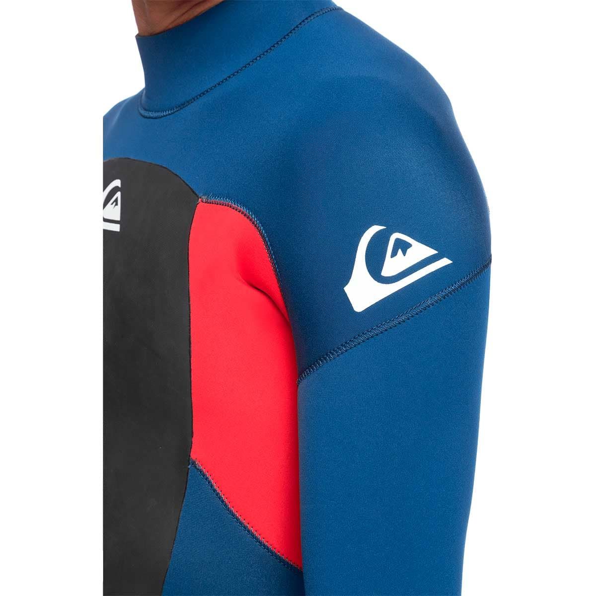El traje de surf con cremallera en la espalda para hombre Prologue 4/3mm azul tiene el logo de Quiksilver estampado en contraste en el pecho y los hombros.