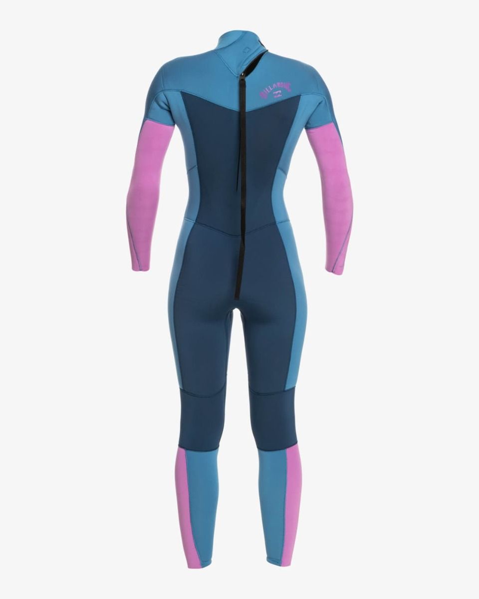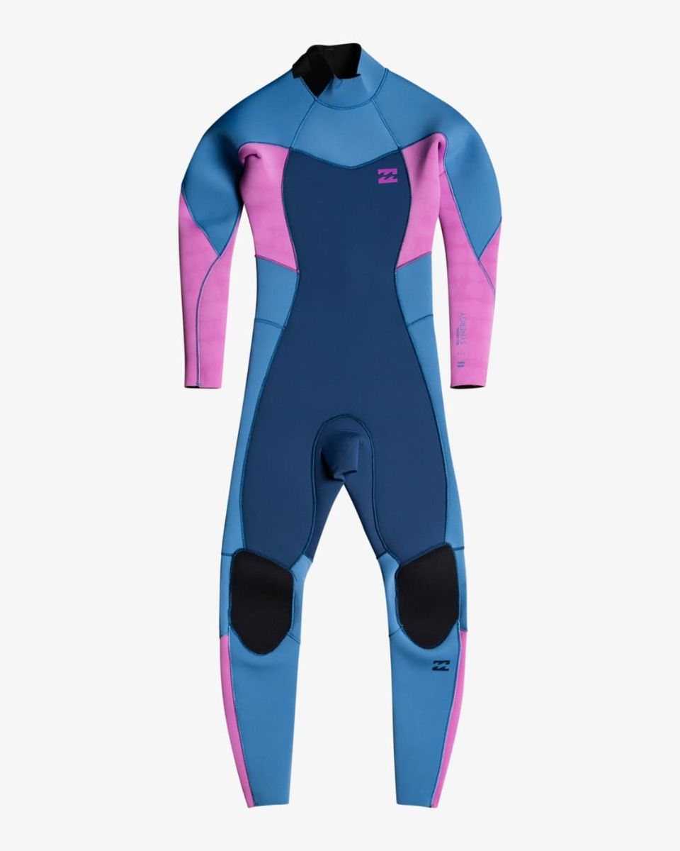 El traje de neopreno con cremallera en la espalda para chica Synergy 4/3mm River tiene el logo de Billabong estampado en contraste en el pecho, las piernas y la espalda.