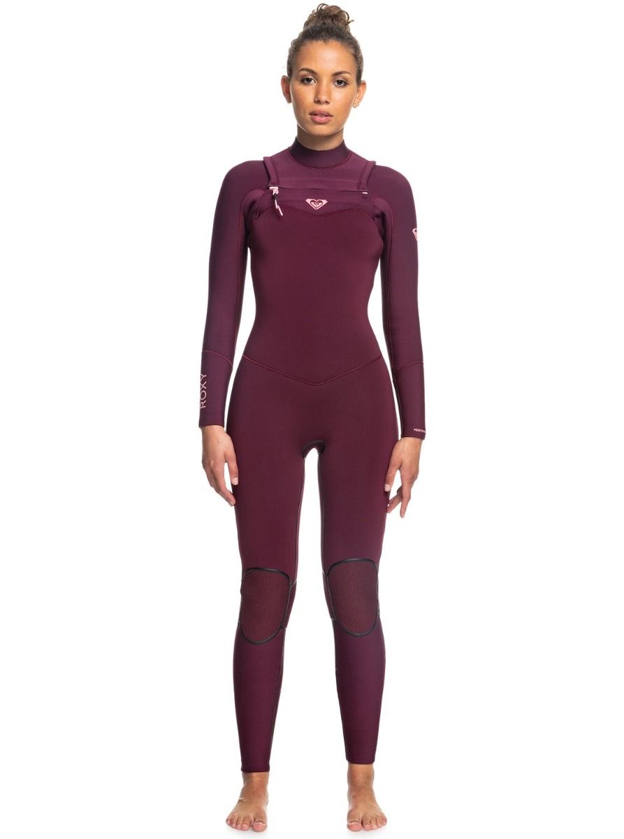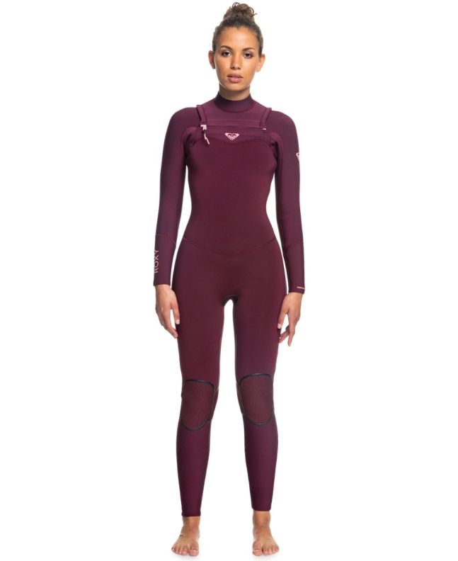 Traje de Surf de Neopreno con Cremallera en el Pecho Roxy 4/3mm Performance Red Plum para mujer