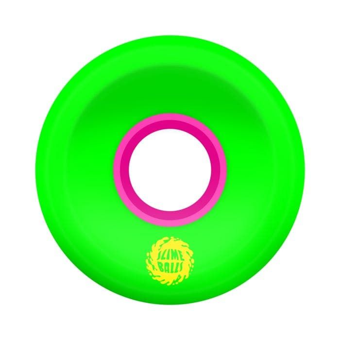 Las ruedas para skateboard Mini OG Slime 54,5mm en color verde con núcelo rosa de Santa Cruz Skateboards han sido fabricadas con uretano blando de gran calidad.