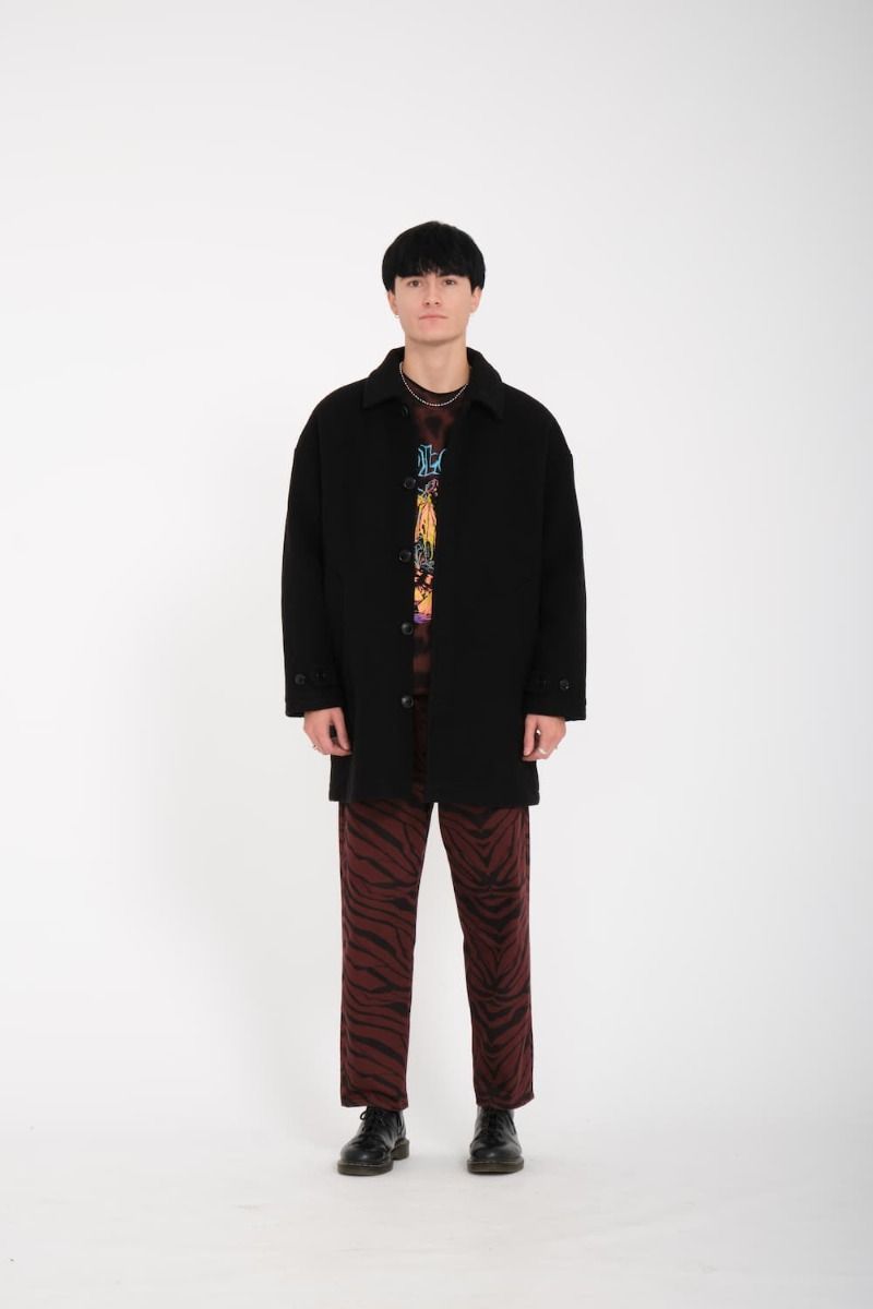 Este abrigo grueso cuenta con corte recto, largo hasta la mitad del muslo, forro interior estampado, cierre delantero con botones y ojal, bolsillos delanteros, bolsillo interior, logo Stone bordado en el bolsillo izquierdo y bordado Volcom.