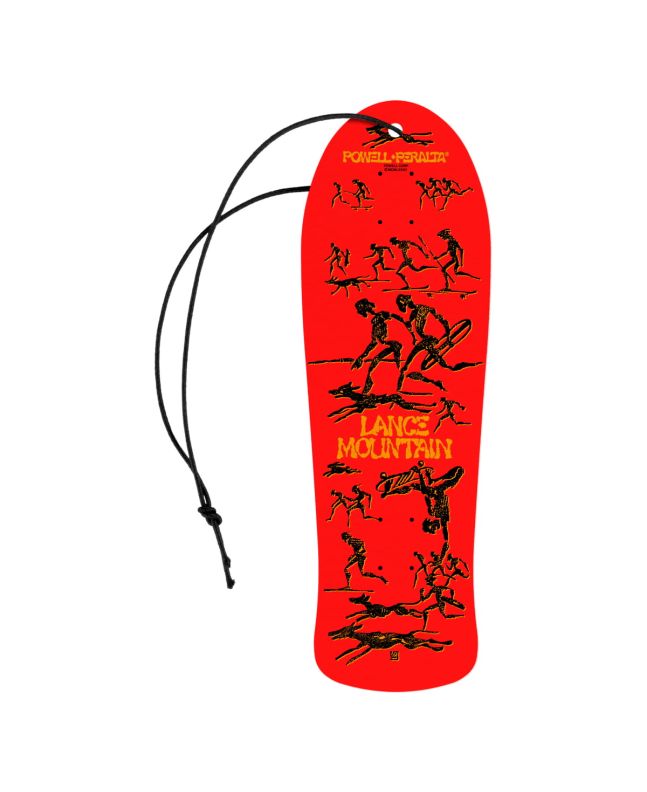 Este ambientador de coche cuenta con un duradero olor a piña, junto con la forma y la impresión gráfica de la Tabla de Skate Lance Mountain Red de la Exclusiva Colección Bones Brigade Series 15 de Powell Peralta.