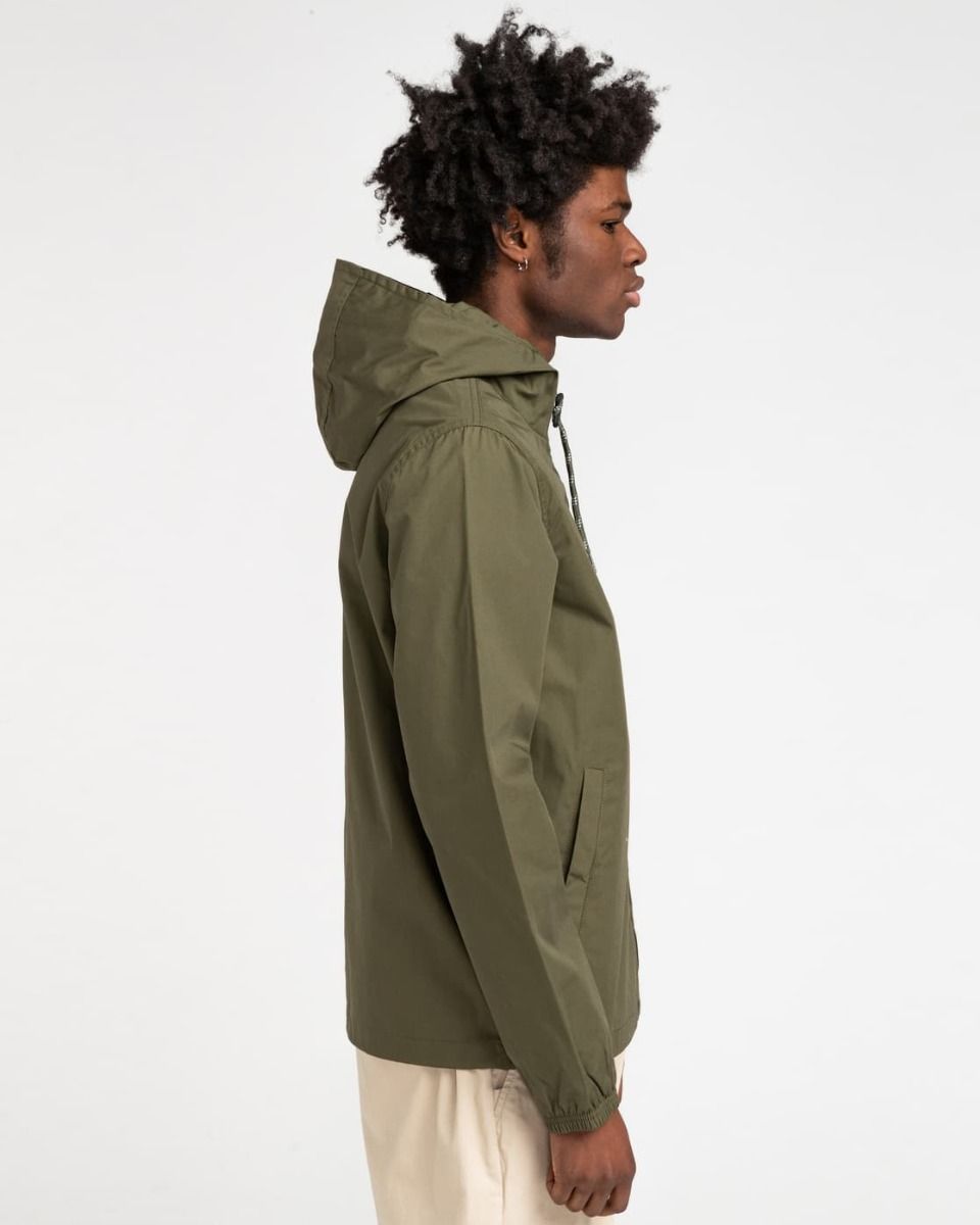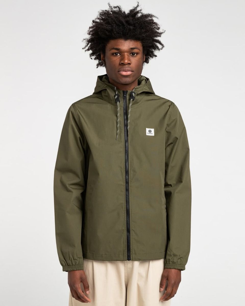 La chaqueta ligera para hombre Wolfeboro Alder Light verde (Army) de Element está confeccionada con mezcla de tejidos ecológicos (65% poliéster Repreve y 35% lona de algodón) y con tratamiento duradero que repele el agua (DWR).