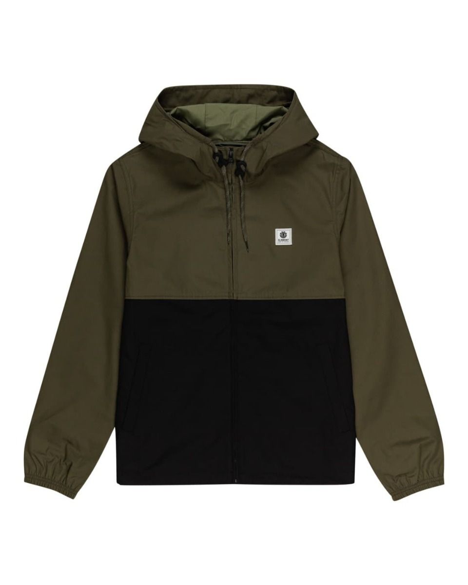 La chaqueta ligera para hombre Wolfeboro Alder Light 2 Tones en negro y verde (Flint Black) de Element está confeccionada con mezcla de tejidos ecológicos (65% poliéster Repreve y 35% lona de algodón) y con tratamiento duradero que repele el agua (DWR).