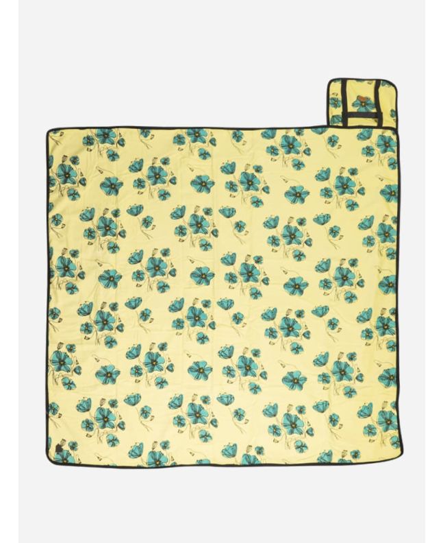 Mantel para picnic impermeable All-In Sweet Mat en color amarillo con estampado floral azul