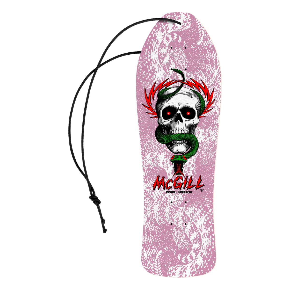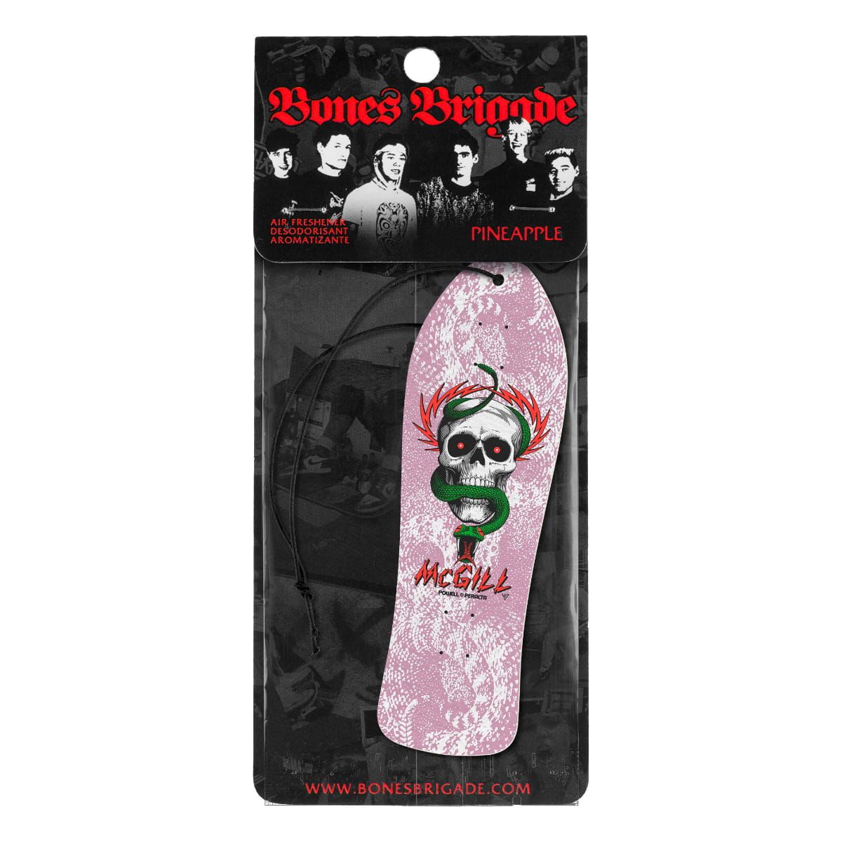 Este ambientador de coche cuenta con un duradero olor a piña, junto con la forma y la impresión gráfica de la Tabla de Skate Mike McGill White de la Exclusiva Colección Bones Brigade Series 15 de Powell Peralta.