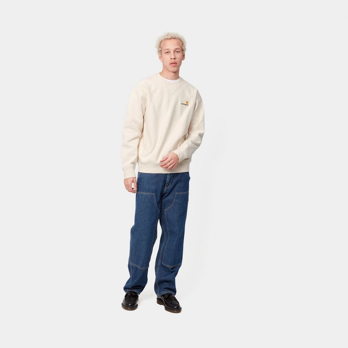 La sudadera para hombre American Script Sweatshirt Natural de Carhartt WIP está fabricada con 80% algodón y 20% poliéster.
