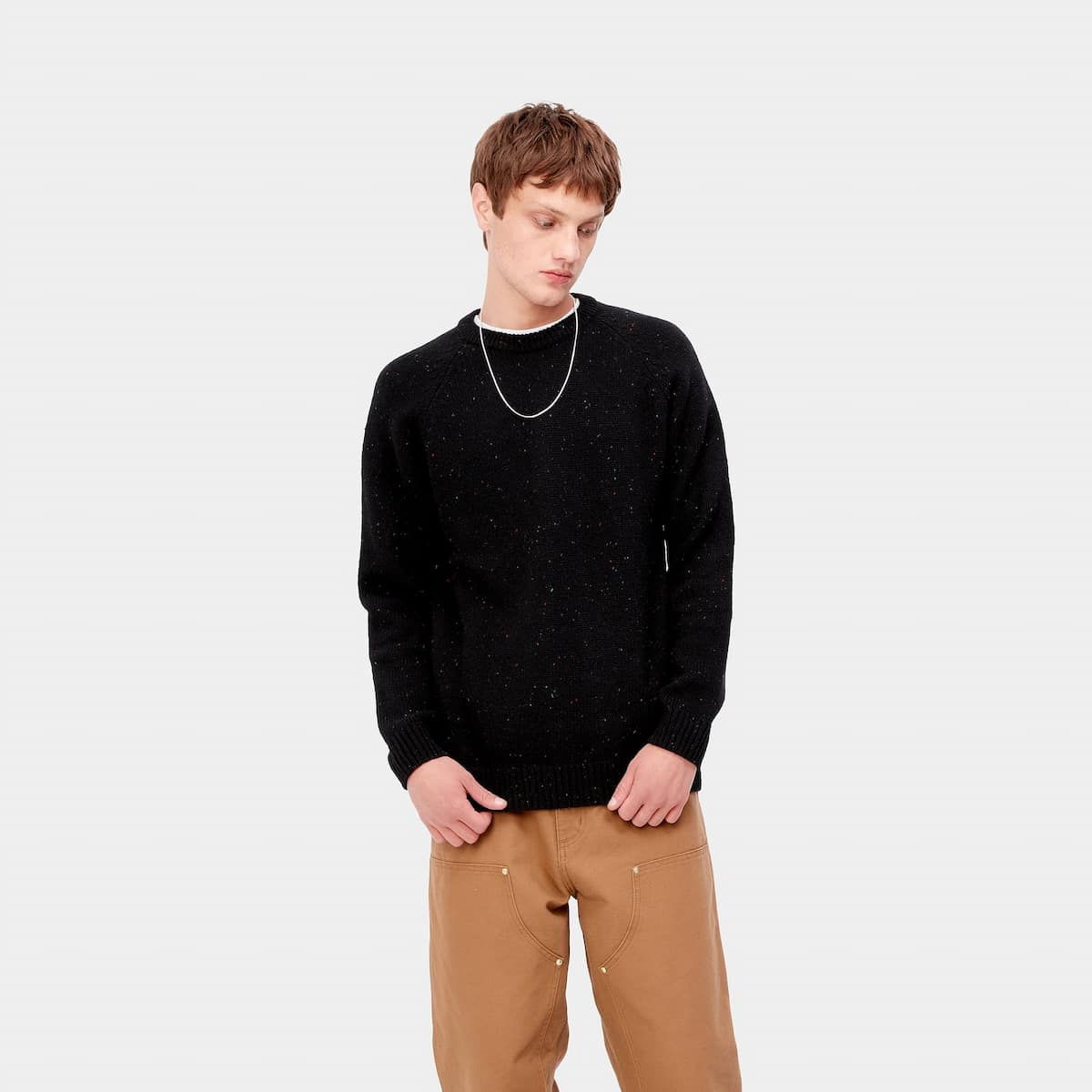 El jersey para hombre Anglistic Sweater en negro (Speckled Black) de Carhartt WIP está confeccionado con 80% lana y 20% algodón de espesor 3.