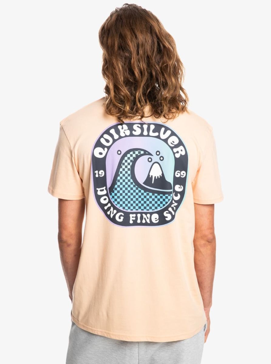 La camiseta para hombre Another Story color salmón tiene el sello de garantía Quiksilver termosellado en el cuello interior.