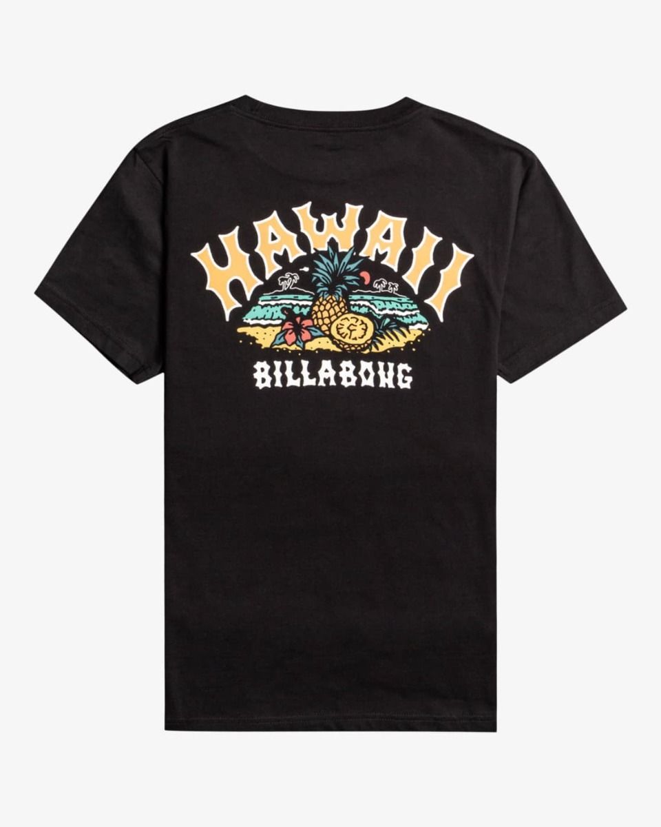 La camiseta de manga corta para chico Arch Dreamy Place negra tiene el sello de garantía Billabong en el cuello interior.