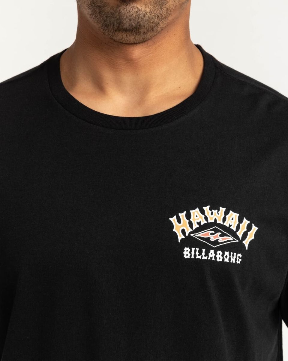 La camiseta de manga corta Arch Dreamy Place negra para hombre tiene el sello de garantía Billabong en el cuello interior.