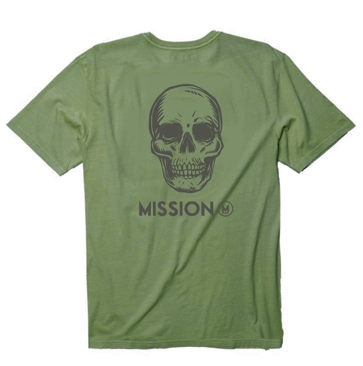 Esta camiseta de corte clásico cuenta con cuello redondo, manga corta, el logo de Mission estampado en el lago izquierdo del pecho, estampado artístico de una calavera y el logo de Mission en la espalda y una discreta etiqueta de tela con el logo de la marca tejida en el dobladillo inferior.