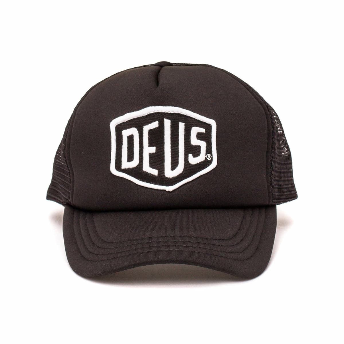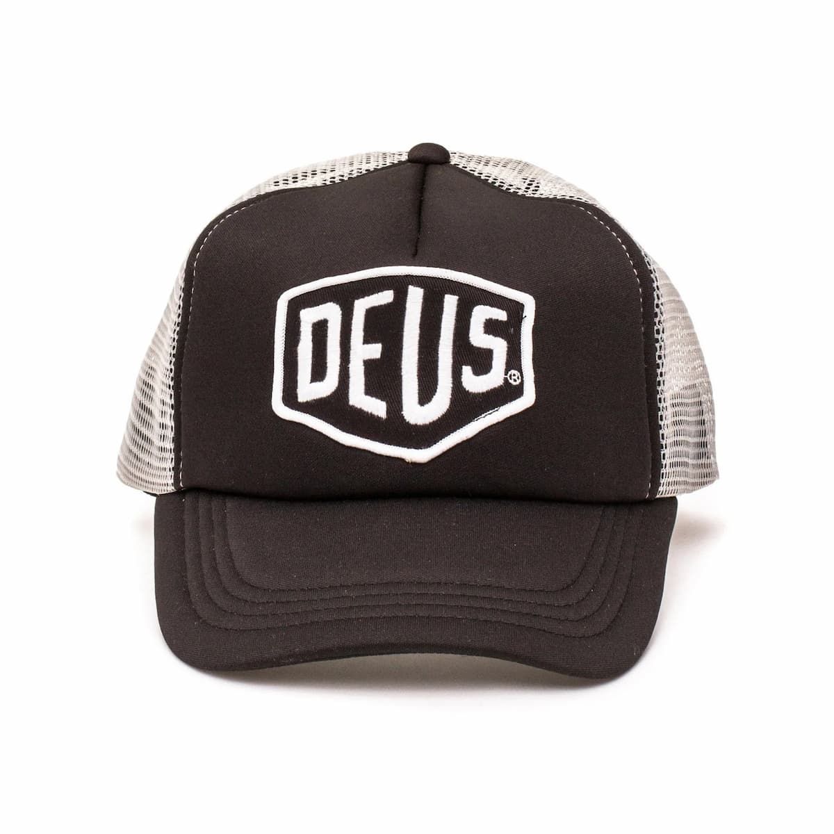 Esta gorra de estilo camionero, perteneciente a la colección "Deus Ex Machina Classics", cuenta con malla de nailon en la partre trasera, acolchado con bordado DEUS en la parte delantera, cierre ajustable posterior de plástico y bordado Deus Ex Machina en la zona trasera.