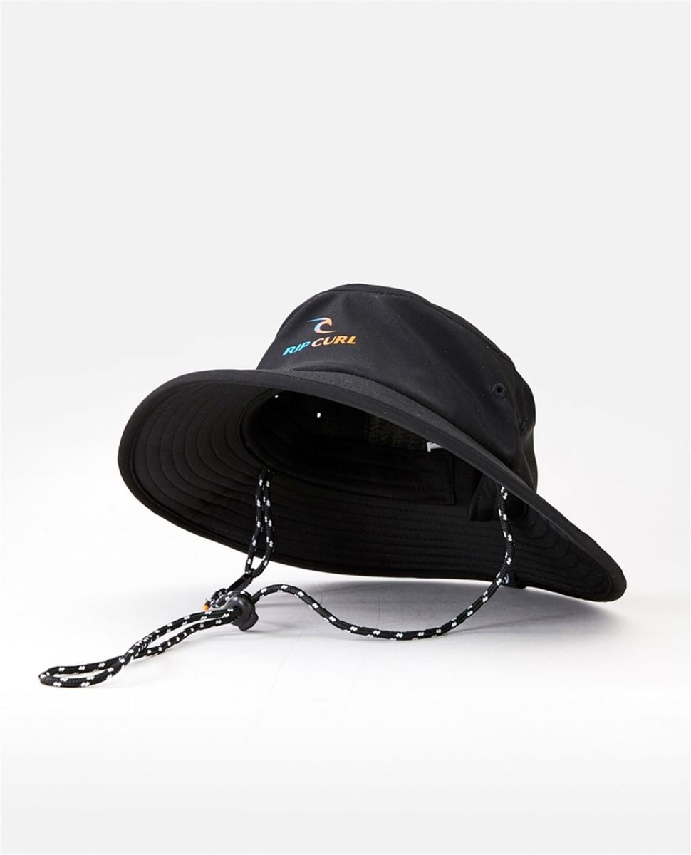 Este sombrero de playa de ala media cuenta con cordón ajustable con cierre en la barbilla y el logo multicolor de Rip Curl estampado en el frente.
