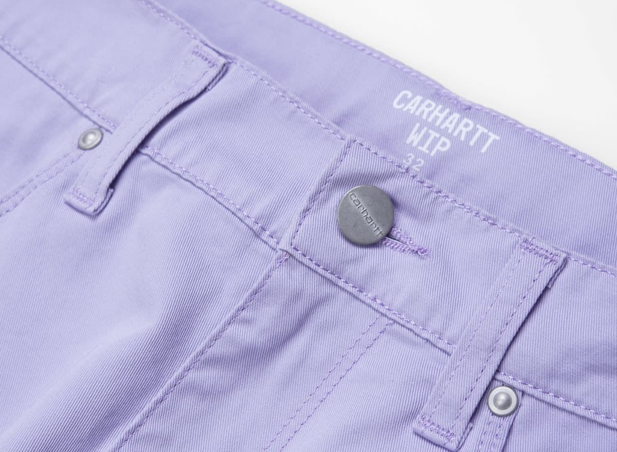 El pantalón corto tipo bermudas para hombre Swell Short lavanda (Soft Lavender) de Carhartt WIP está confeccionado con sarga de 97% algodón y 3% lycra Wichita Stretch (7,5oz).