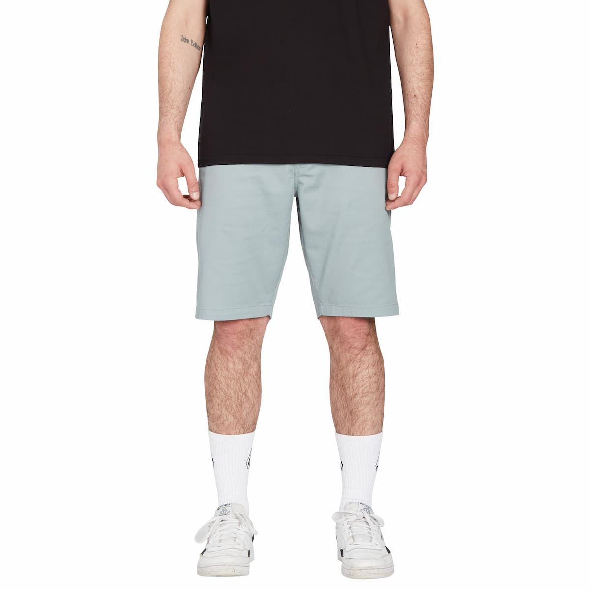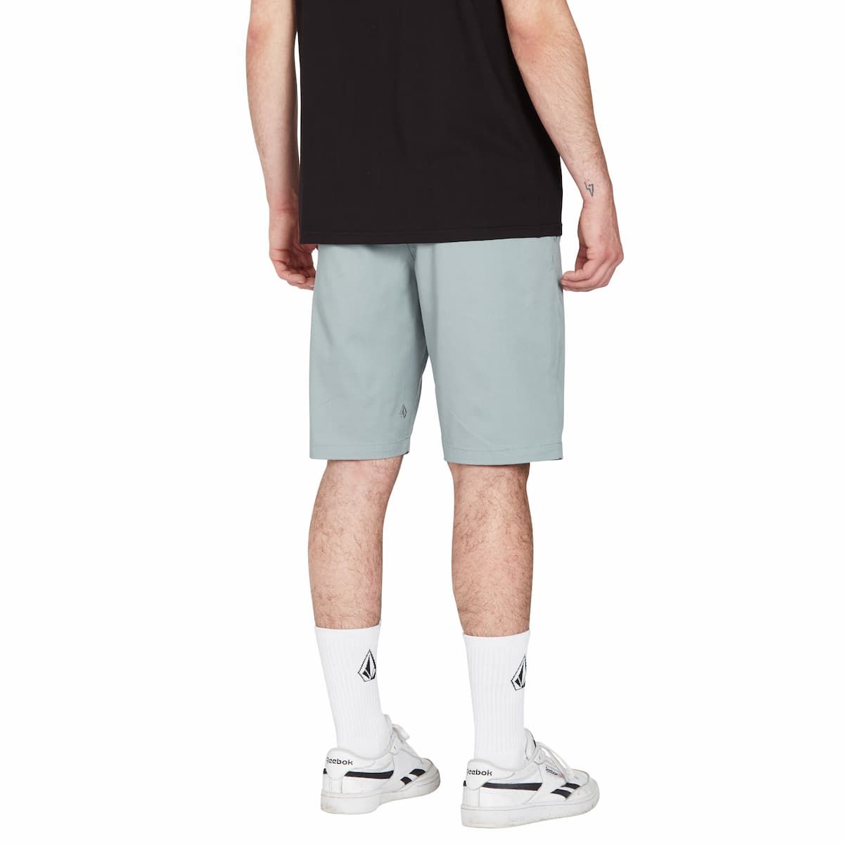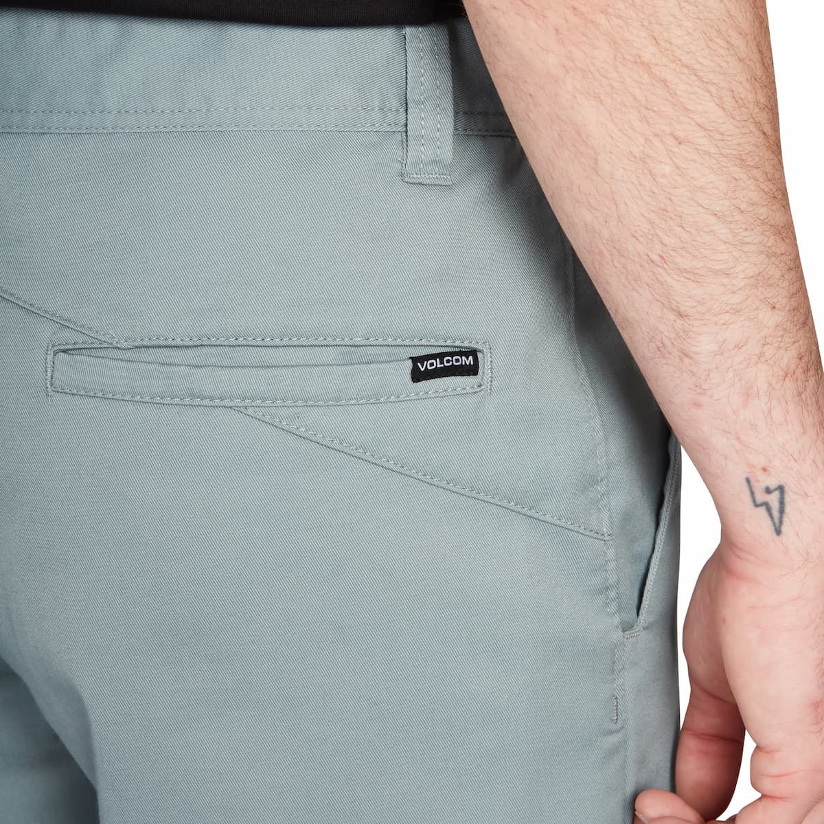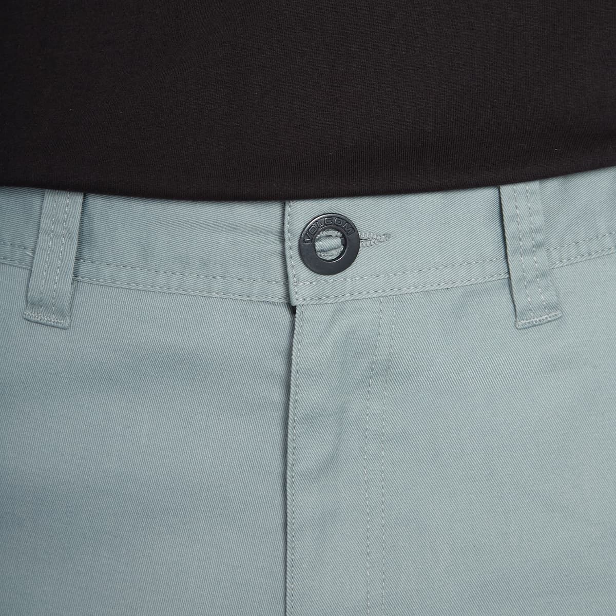 Estas bermudas de estilo chino para hombre cuentan con talle normal, corte moderno, largo de 53cm (21"), 5 bolsillos, corte posterior asimétrico bajo la cintura, cierre de botón, bordado Stone en la pierna izquierda y una etiqueta Volcom tejida en el bolsillo trasero derecho.