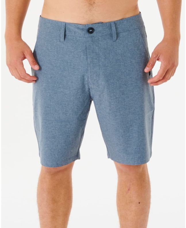 Las bermudas híbridas para hombre Epic Mix Boardwalk 19" en azul (Blue) de Rip Curl, diseñadas para llevar tanto dentro como fuera del agua, están confeccionadas con 86% poliéster reciclado y 14% elastano.
