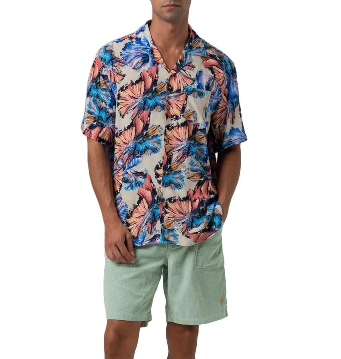 La camisa de manga corta para hombre Betta Fish con estampado floral (Unique) de Lightning Bolt está confeccionada con 100% algodón.