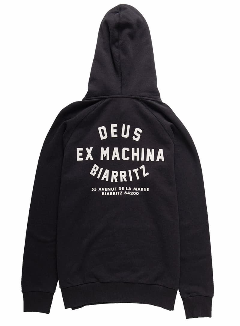 La sudadera con capucha para hombre Biarritz Address en negro (Black) de Deus Ex Machina está confeccionada con tejido de algodón cepillado (350g).