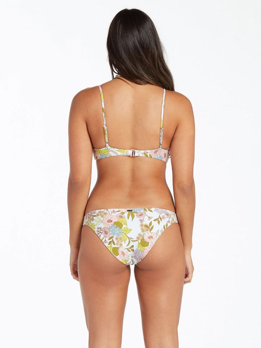 El top de bikini para mujer Big Poppy Vneck blanco tiene una etiqueta de garantía Volcom en el interior.