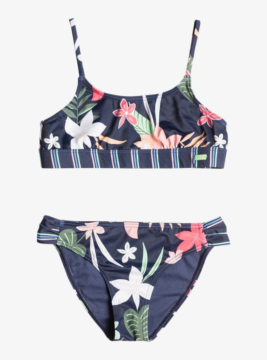 Conjunto de Bikini Bralette Roxy Vacay for Life Girl en color azul marino floral para niña (7-16 años)