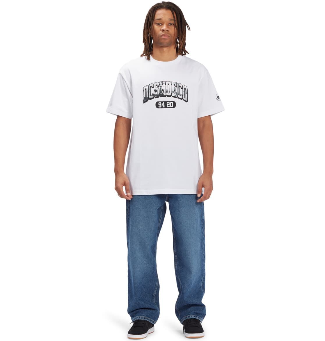 Esta camiseta de corte ajustado cuenta con cuello redondo, manga corta, un estampado DCSHOECO en Plastisol en el pecho, el logo de DC serigrafiado con tinta de alta densidad en la manga izquierda y una etiqueta con el logotipo de la marca cosida en el dobladillo.