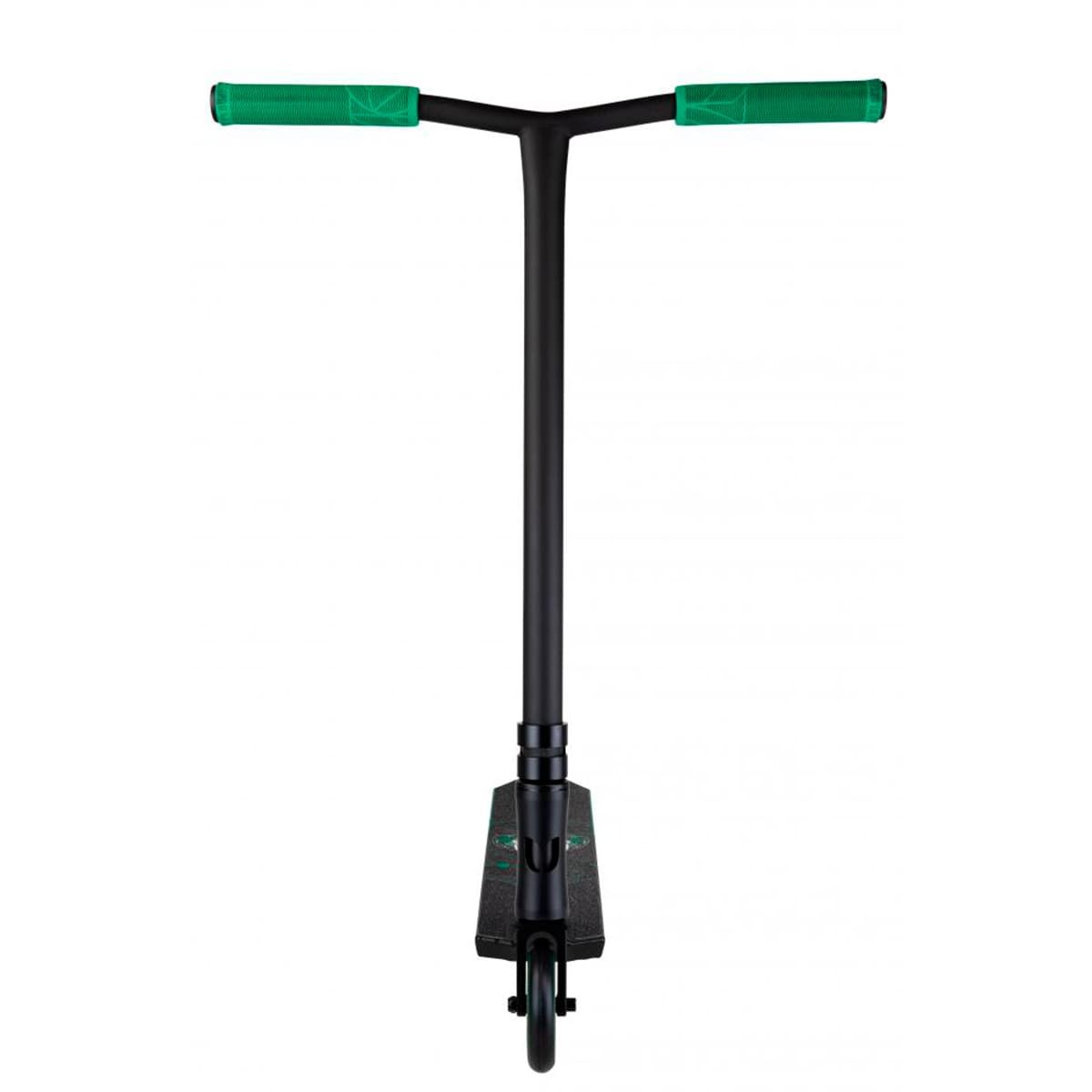 Este Scooter Completo para Freestyle color Negro y Verde cuenta con deck de aluminio 6061 tratado térmicamente T4/T6 de 520mm de longitud y 120mm de ancho, freno híbrido de plástico y aleación Flex Fender, manillar Chromoly Wing Bar con 590mm de alto y 560mm de ancho, mástil de aluminio 6061 con el logo CNC Blazer Pro en el tubo de dirección con ángulo de 83º, horquilla de aluminio 6061 con detalles CNC, dirección de acero, HIC y un tamaño máximo de rueda de 120mm, clamp de diseño único con dos pernos de aluminio 6061 y juego de dirección de 1/18" totalmente integrado.