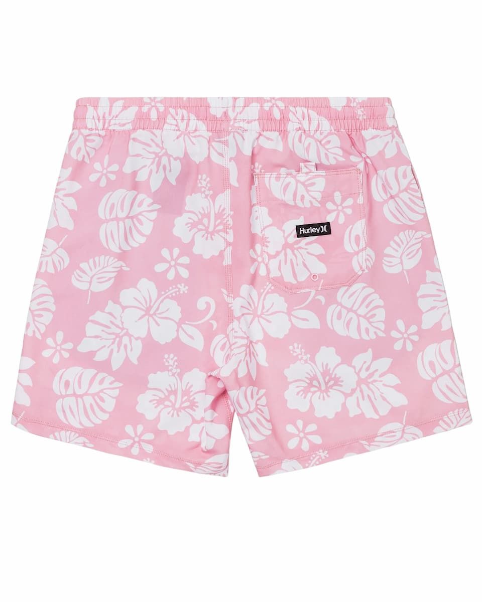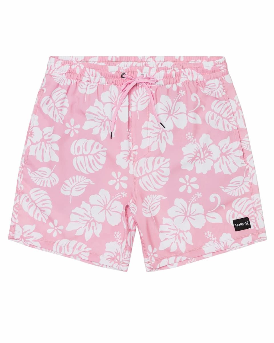 El bañador para hombre Cannonball Volley 17" en tono rosa con detalles florales (Lollipop) de Hurley está confeccionado con tejido Phantom de secado rápido en mezcla de 94% poliéster reciclado y 6% elastano.