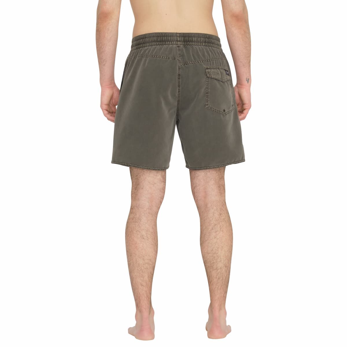 El boardshort Center Trunk 17" Wren cuenta además con un bolsillo posterior de parche con solapa y agujeros de drenaje, bolsillos laterales para mayor practicidad, una etiqueta "Volcom. True To This" tejida en el bolsillo y un parche Volcom bordado en la pierna izquierda, agregando detalles de estilo distintivos.