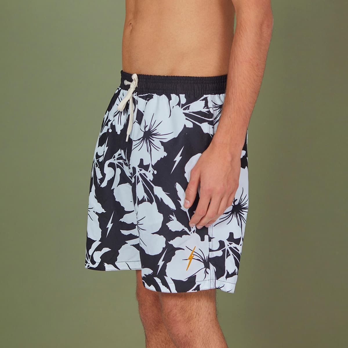 Este bañador surfero cuenta con cintura elástica ajustable mediante cordón, 40cm (16") de largo, calzoncillo interior de malla, dos bolsillos laterales, un bolsillo trasero, estampado botánico por toda la prenda y el rayo de Lightning Bolt bordado en contraste en la pierna izquierda.