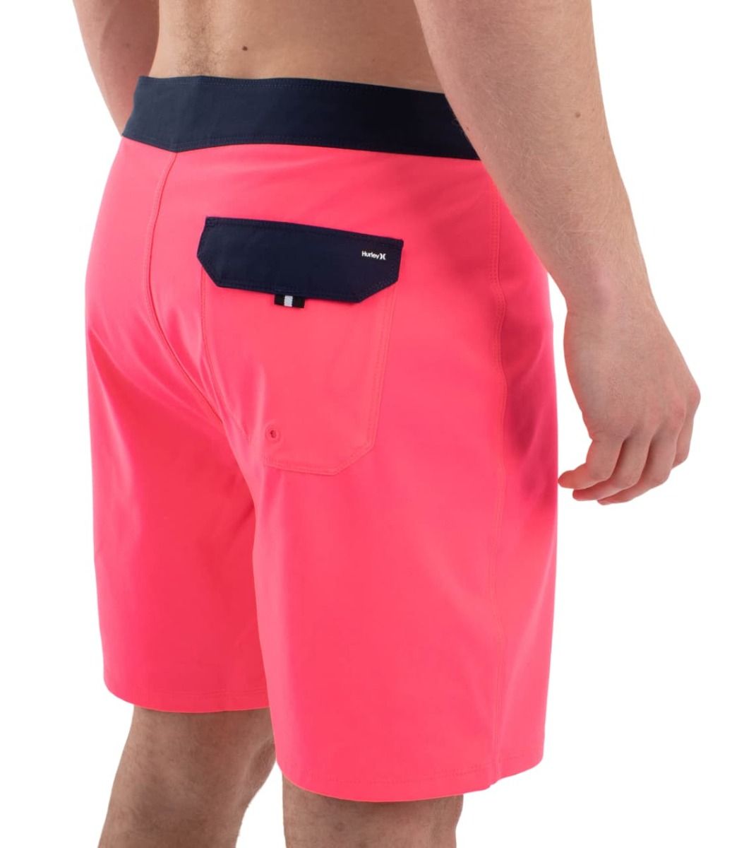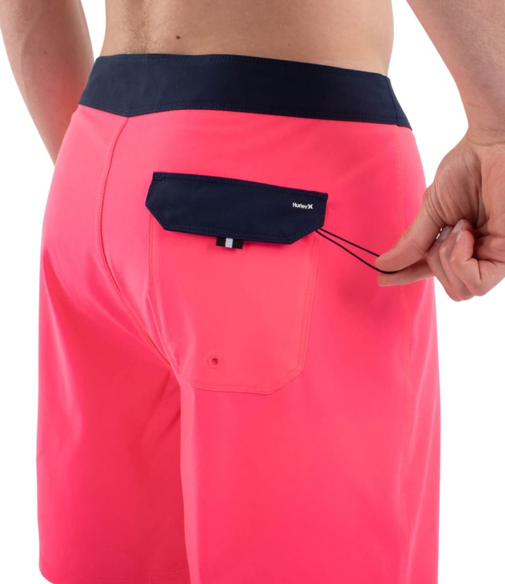 Este boardshort sostenible de diseño básico en intenso color rosa neón cuenta con resistente tejido elástico en 4 direcciones, revestimiento DWR para un secado rápido, cintura clásica, pierna recta, 45,7cm (18") de largo, cordón de ajuste, bolsillo posterior con cierre de velcro y agujero de drenaje, cordón para llaves, sello Phantom en la cintura y un parche de Hurley One & Only tejido en la pierna izquierda.