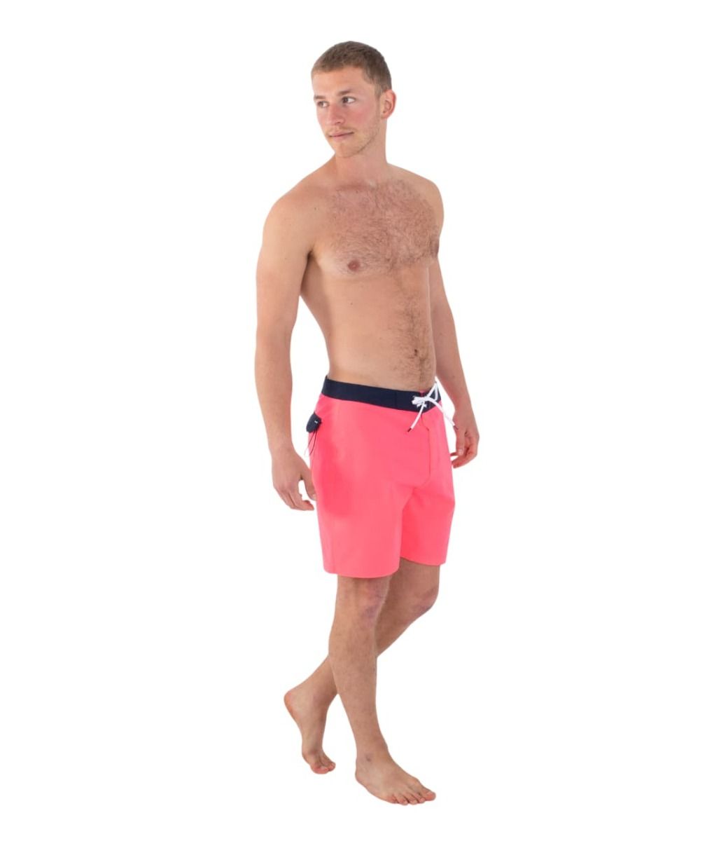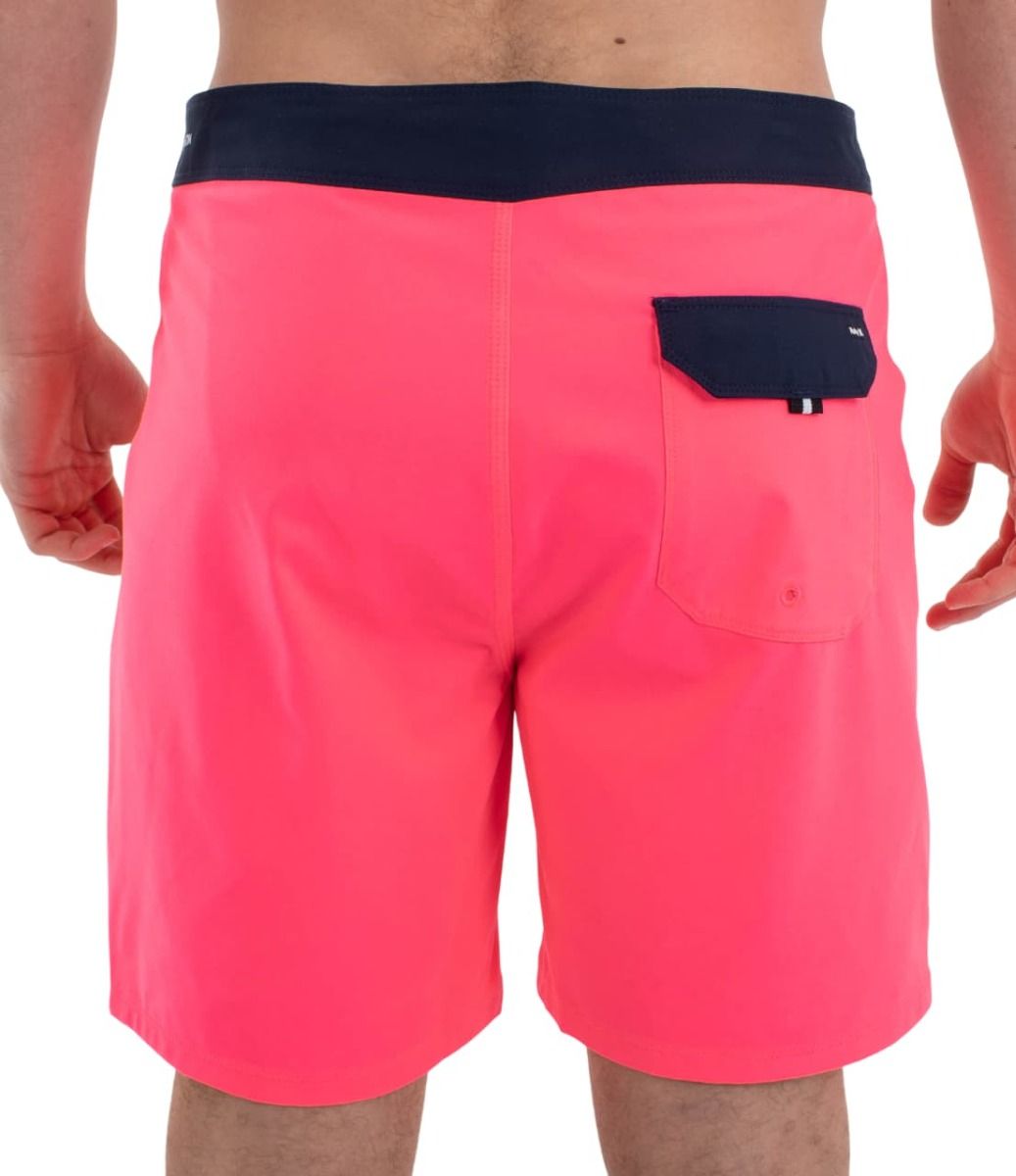 El bañador para hombre Phantom-Eco One and Only Solid 18" en tono rosa neón (Neon Pink) de Hurley está confeccionado con tejido Phantom fabricado a partir de materiales reciclados (86% poliéster reciclado y 14% spandex).