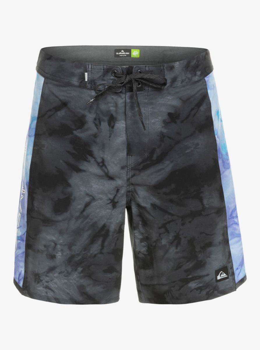 Este boardshort de corte performance cuenta con longitud de 18" (45,7cm), recubrimiento hidrofóbico a base de plantas, cintura fija con cierre de cordón ajustable, bragueta performance, bolsillo posterior con solapa y agujero de drenaje, un cordón elástico para llaves en el interior del bolsillo y un pequeño parche de tela con el logo de la ola y la montaña de Quiksilver tejido en la pierna izquierda.