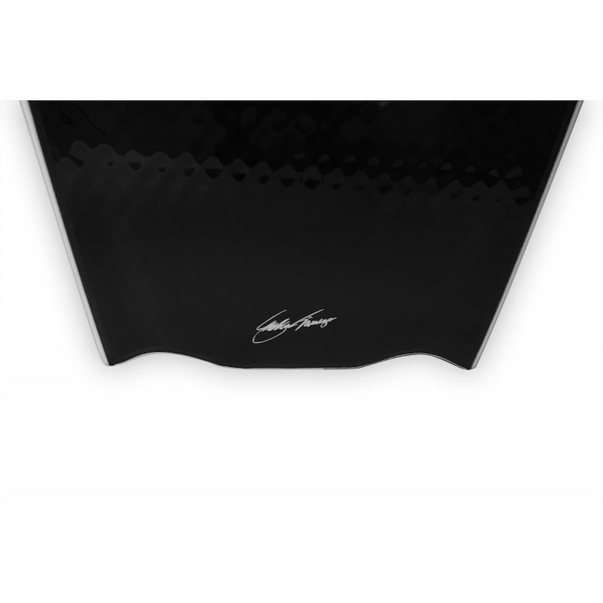 Visualmente, el deck tricolor (azul midnight, negro central y blanco) con el logo Tâmega transmite carácter y estilo. El slick en color negro brillante muestra un acabado texturizado con patrón de diamante, destacando su calidad profesional. Detalles como la firma de Guilherme en la cola y el shape simétrico confirman su ADN de competición.