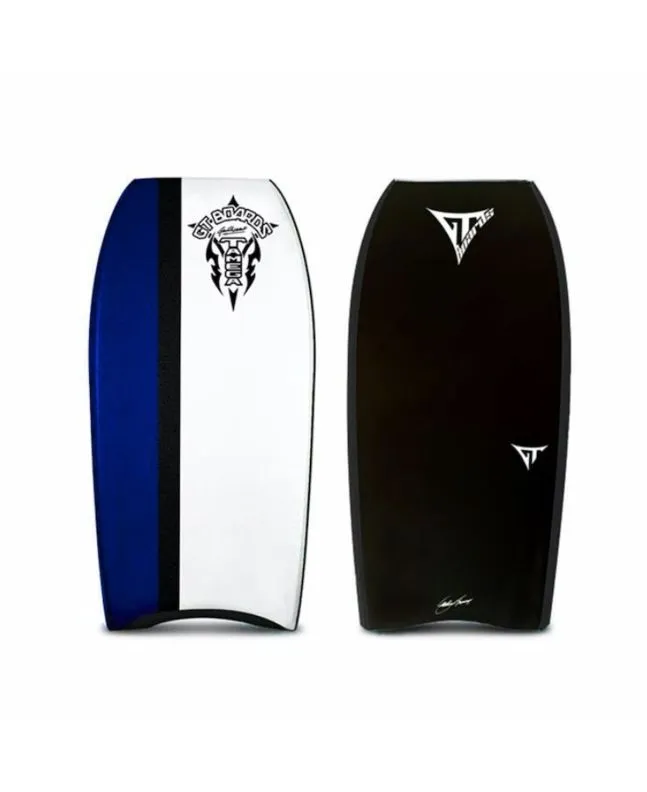 Su estética visual es impactante: el deck gráfico dividido en blanco, negro y azul medianoche le confiere una personalidad fuerte y diferenciada. El slick en negro sólido mate con logos GT minimalistas añade un toque profesional y sobrio que destaca en cualquier playa. Es una tabla de bodyboard que llama la atención fuera del agua y rinde al máximo dentro de ella.