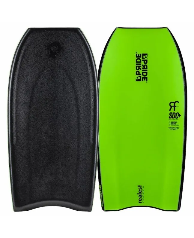 La tabla de bodyboard Realest PP Radial Flex SDC+ Varial en Negro-Verde Flúor (Black-Fluro Green) de Pride Bodyboards está pensada para obtener la máxima velocidad, proyección y durabilidad.