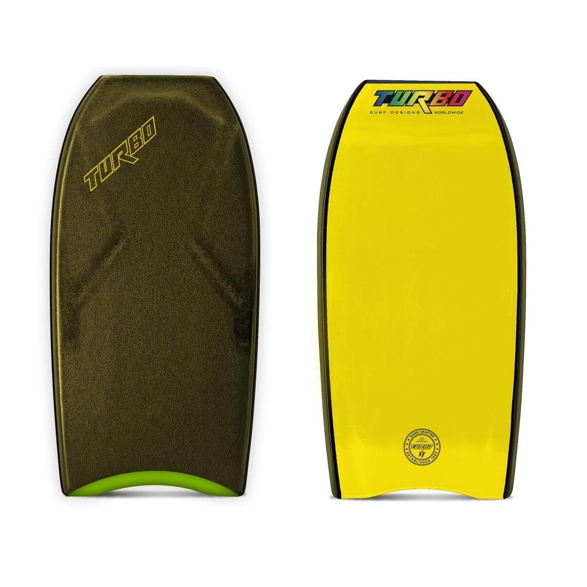 Tabla de Bodyboard Turbo The Six PP en color verde militar y amarillo (Green/Yellow)Ā