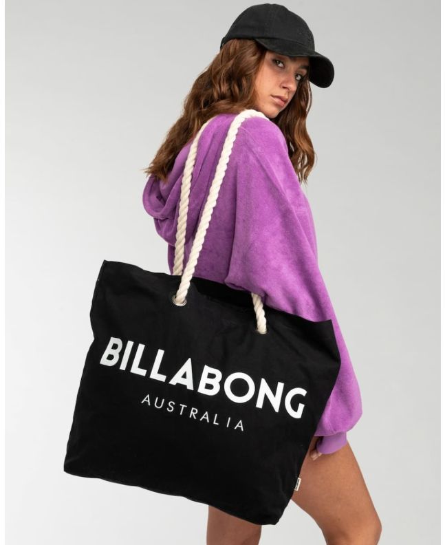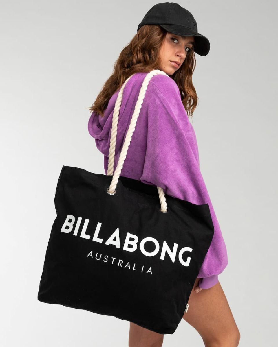 Esta bolsa playera grande estilo tote bag cuenta con dos asas de cuerda para su transporte, un amplio compartimento principal y estampado "Billabong. Australia" en la parte delantera.
