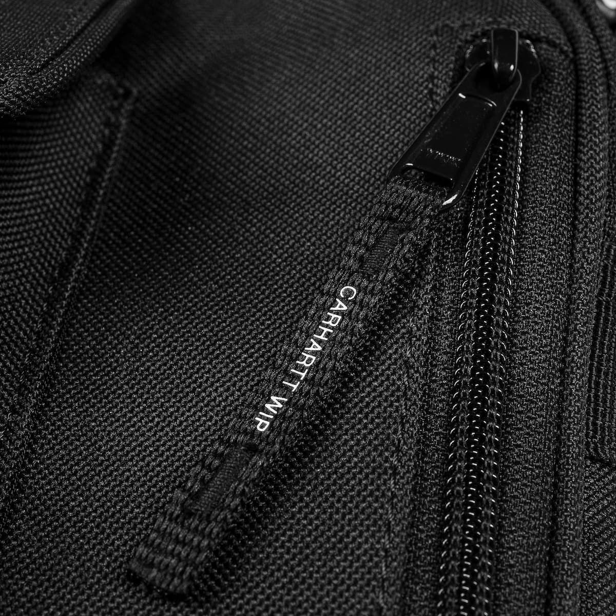 Este práctico bolso Unisex cuenta con correa para el hombro ajustable, forro interior, dos bolsillos principales con cierre de cremallera bidireccional, un bolsillo frontal con solapa y cierre de velcro, un bolsillo frontal con cierre de cremallera, un bolsillo interior con cremallera y una etiqueta cuadrada con el logo de Carhartt WIP tejida en la zona delantera.