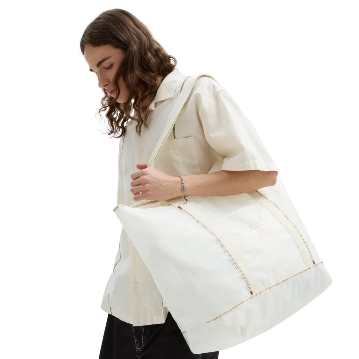 La bolsa shopper para hombre y mujer Mikey Tote Michael February en blanco (Marshmallow) de Vans está confeccionada con 100% nailon reciclado.