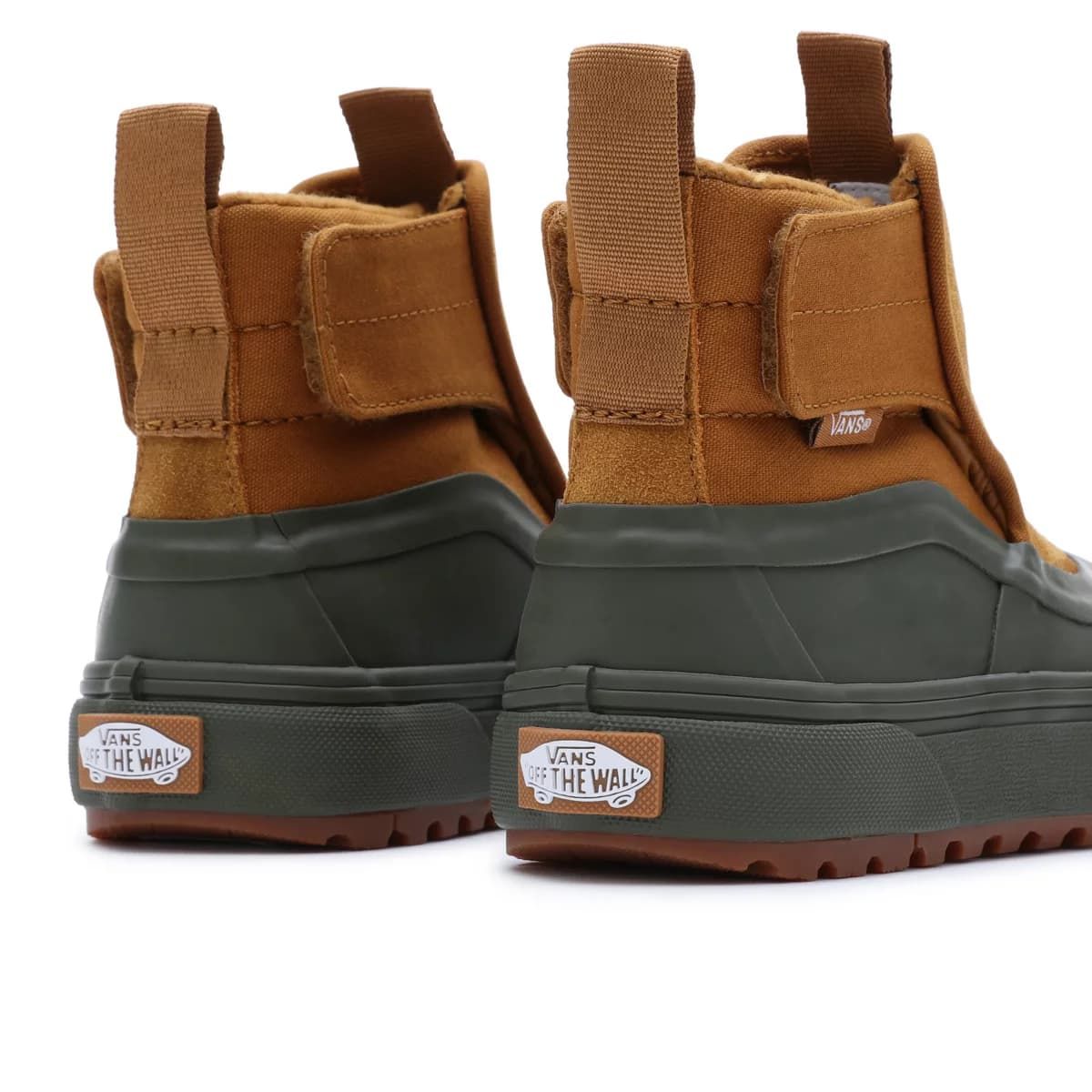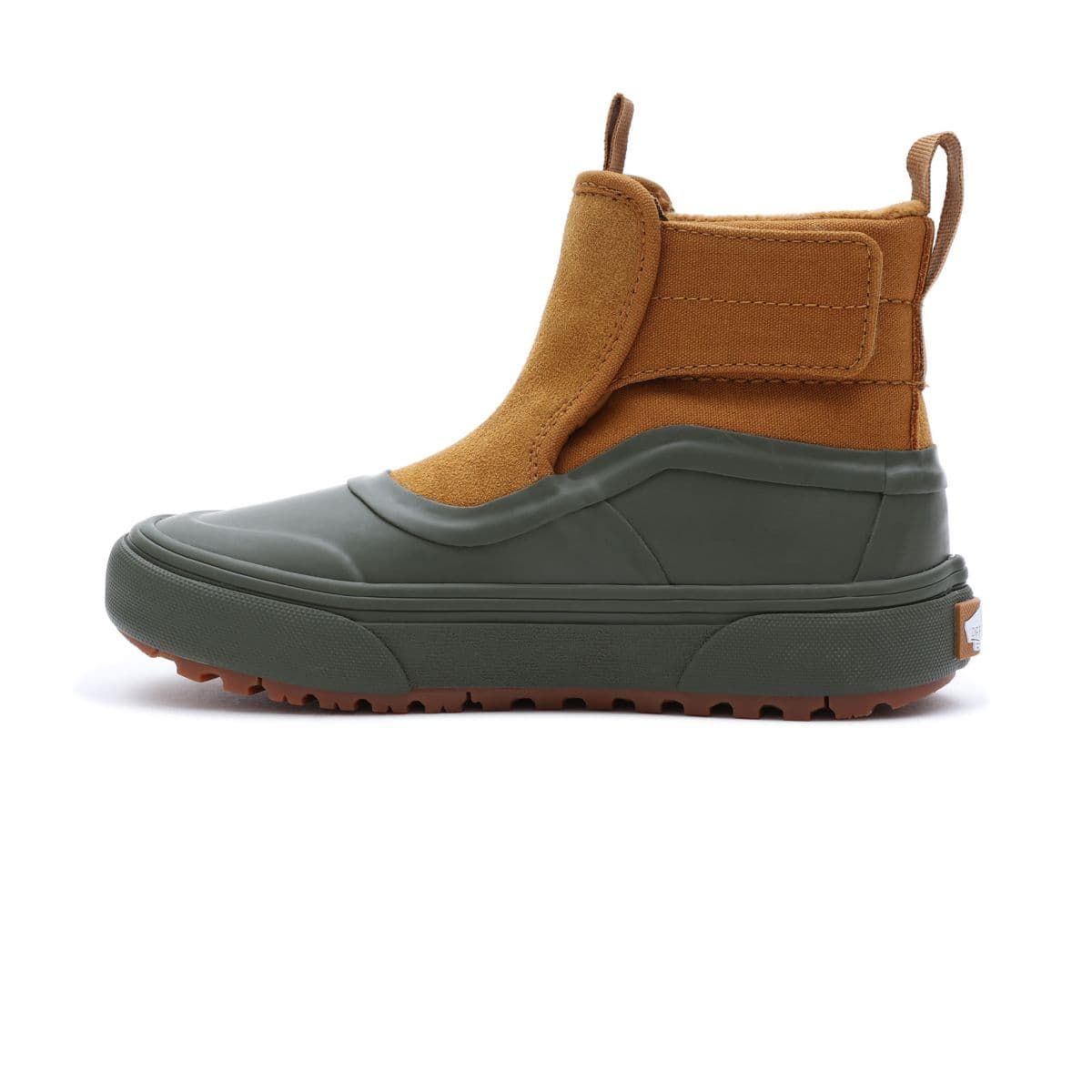 Las zapatillas tipo bota resistentes al agua Vans Slip On Hi Terrain V MTE-1 marrones y verdes para niño/as de 4 a 8 años están diseñadas para proteger a los pequeños frente a las inclemencias del tiempo, ya sea lluvia, nieve, barro, viento... por lo que son ideales para todo tipo de condiciones climáticas.