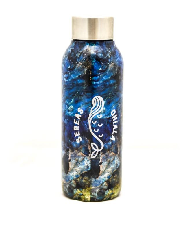 Este práctico termo cuenta con un diseño artístico marino con el logo de Sereas Ohiala estampado, capacidad para 510ml, sistema antigoteo, boca ancha para introducir cubitos de hielo, libre de condensación, conserva el calor durante 12h, el frío durante 24h.
