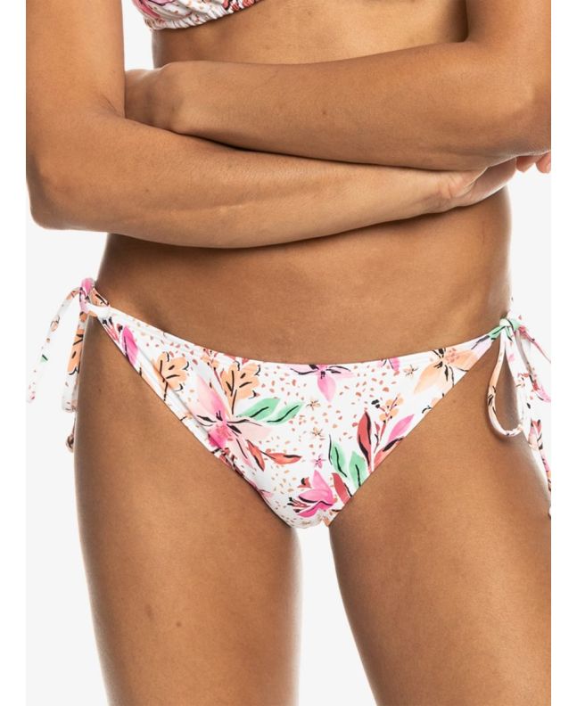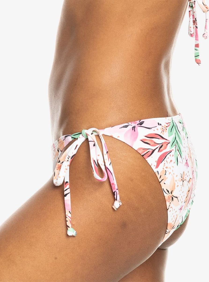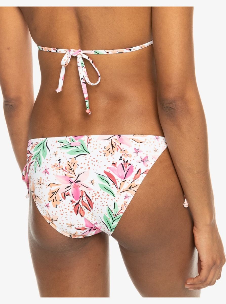 La braguita de bikini con lazo lateral para mujer Printed Beach Classics Bikini Tie Side en tono blanco con estampado tropical (White Happy Tropical Swim) de Roxy está confeccionada con tejido reciclado, elástico, suave y resistente al cloro (87% Nailon reciclado, 13% Elastano).
