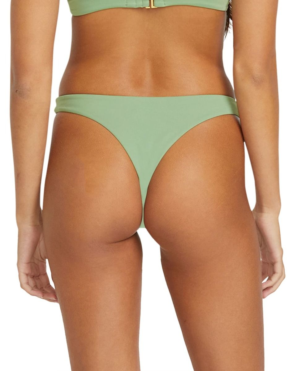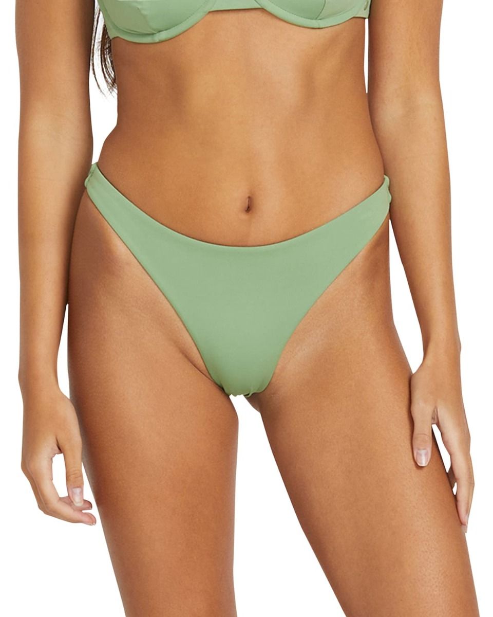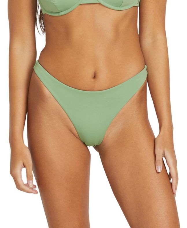 Braguita bikini Volcom verde con tiro bajo y cobertura escasa. Tejido reciclado, cómodo y con diseño auténtico para un look surfero fresco.