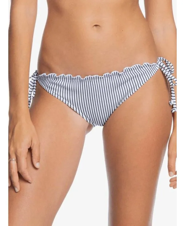Esta braguita de bikini de cobertura normal y talle medio cuenta con cierre con lazada, acabado de ribete sobrehilado en la cintura, y el logo ROXY en una placa metálica.