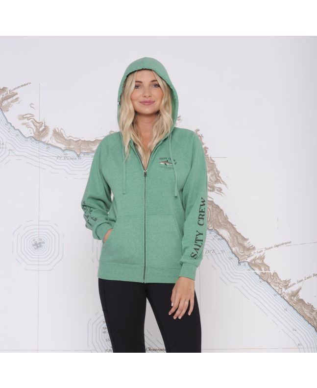 Sudadera con capucha y cremallera Salty Crew Bruce en color verde para mujer