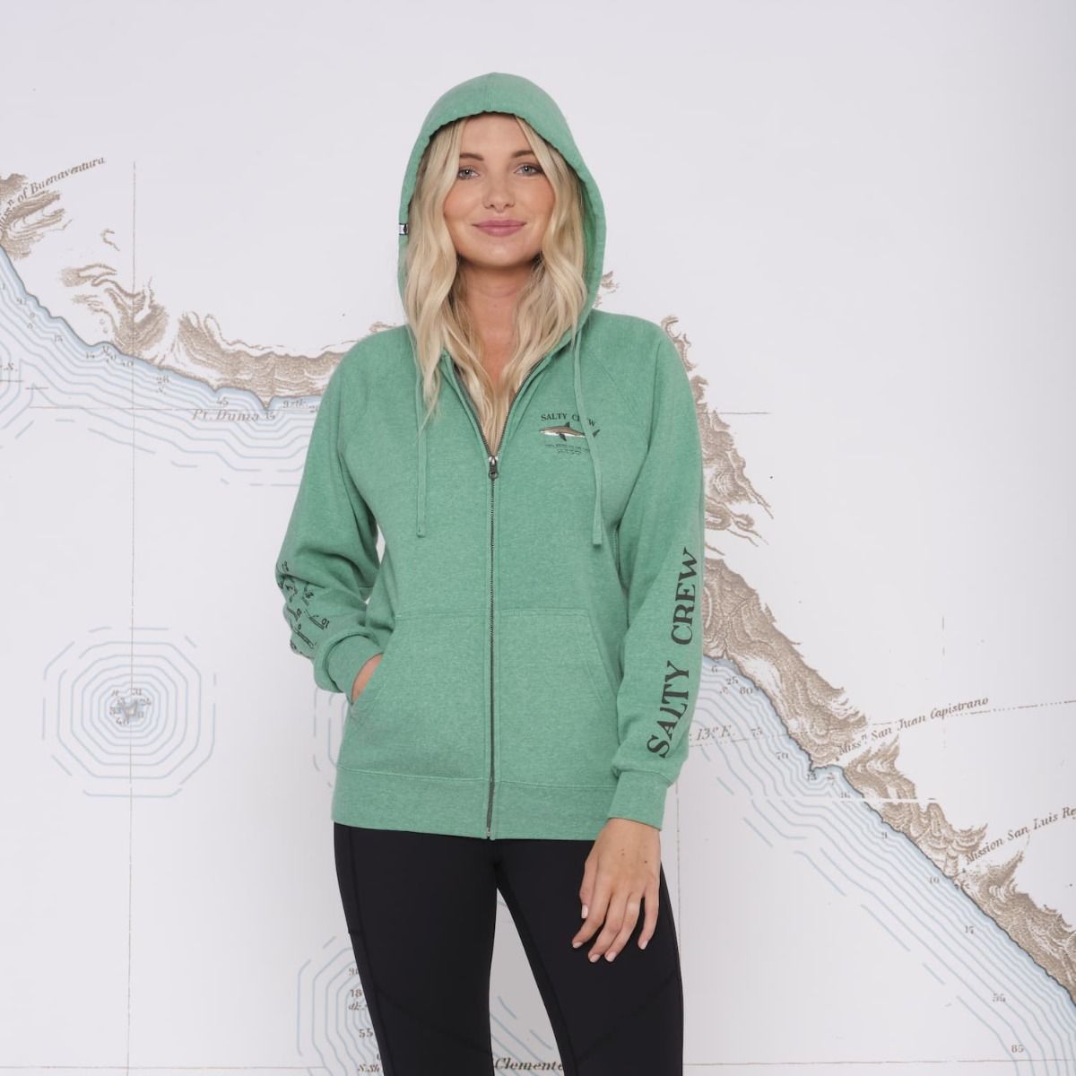 La sudadera con capucha y cremallera para mujer Bruce en verde de Salty Crew está confeccionada con 52% algodón y 48% poliéster.
